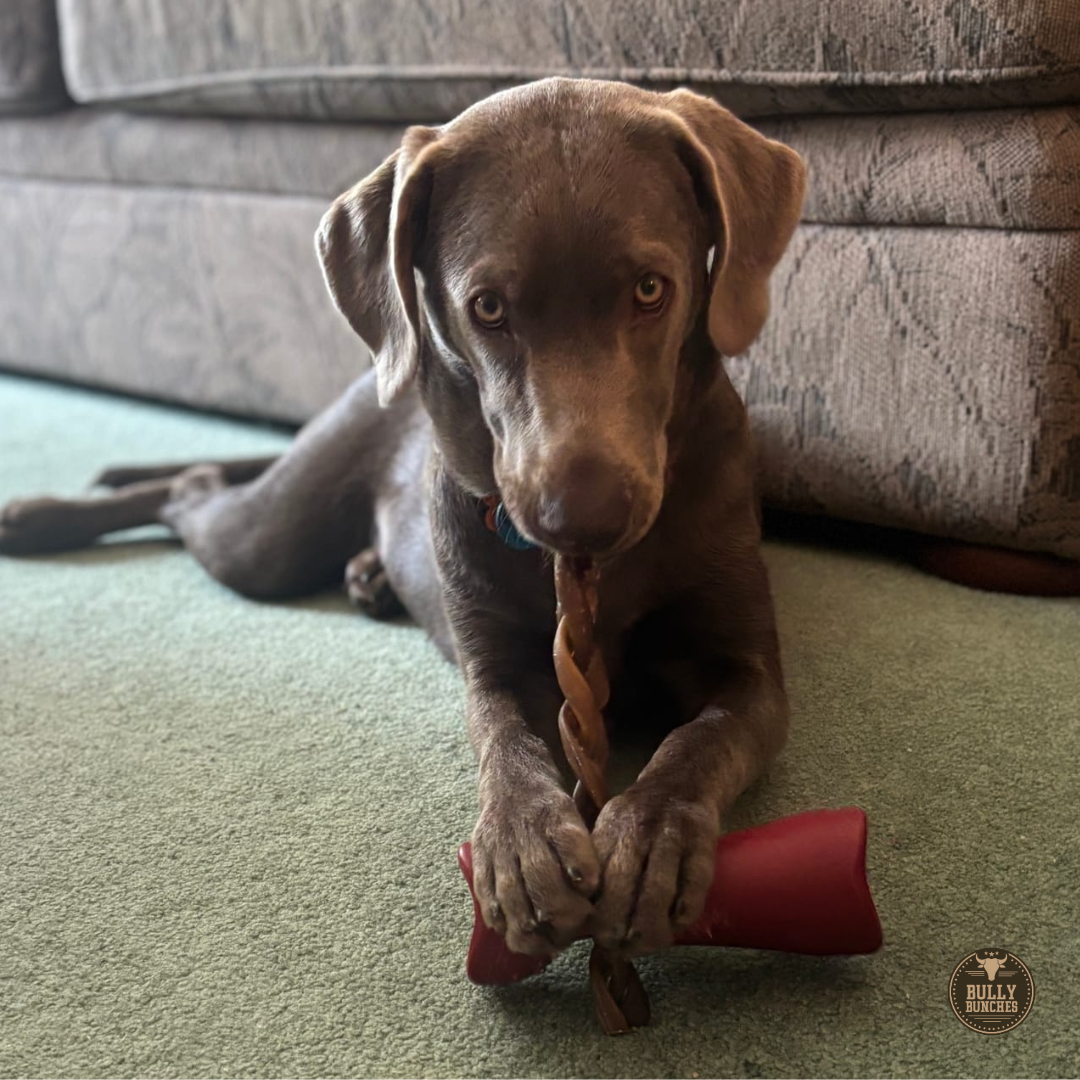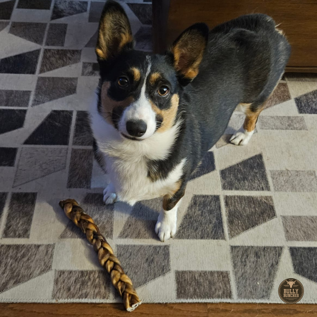 Quality treats from Bully Bunches are not your average dog chews. These braided collagen chews for dogs are long-lasting and healthy chews designed for the most enthusiastic tail-wagging chewers. Our braided collagen chews for dogs last 20% longer* than bully sticks of the same size, depending on the type of chewer your good boy or good girl is. Bully Bunches braided collagen chews for dogs are 100% beef skin and made from the innermost layer, which contains the most collagen and has no rawhide. Collagen is an essential nutrient for your dog because it promotes healthy skin, fur, muscles, and nail growth.