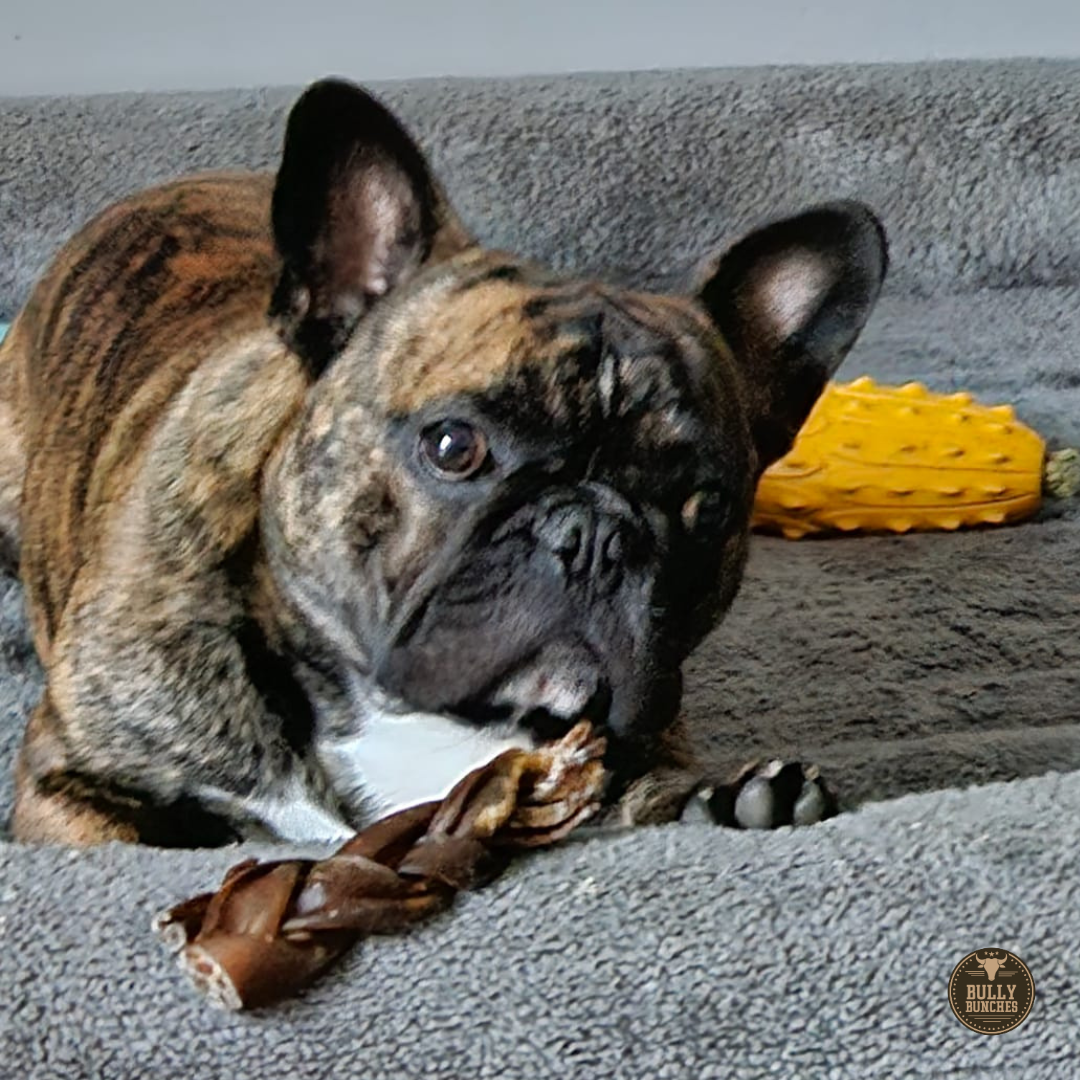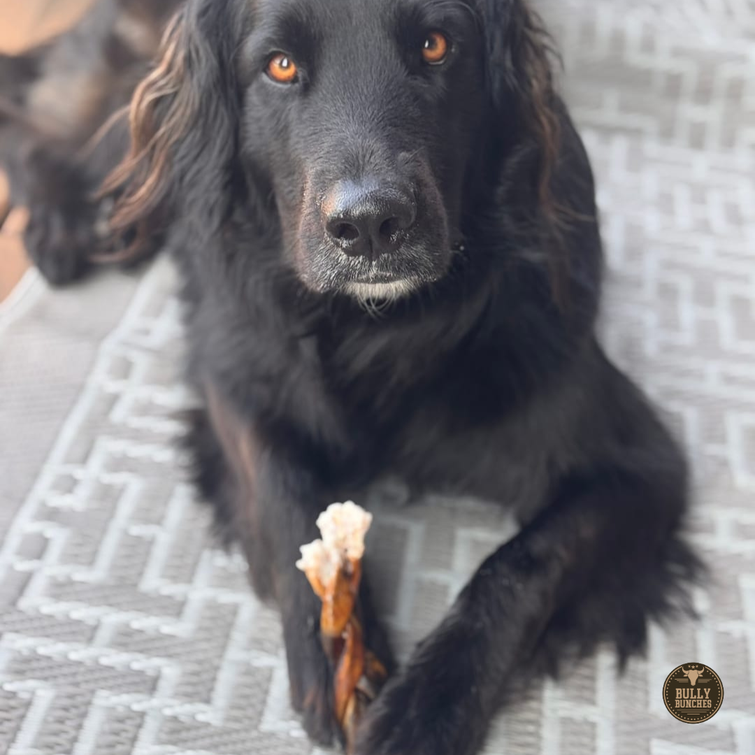 If you’ve got a small dog with lots of energy, try giving him or her our small braided collagen stick! These 5-6 inch braided collagen sticks are a long-lasting and healthy chew designed for powerful chewers in small statures. Our braided collagen chews last 20% longer* than bully sticks of the same size, which means more fun chew time for your fur child. Bully Bunches braided collagen chews are 100% beef skin made from the innermost layer, which contains the most collagen and has no rawhide. As a bonus, collagen promotes healthy skin, fur, muscles, and nail growth.