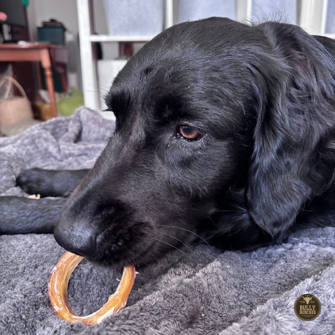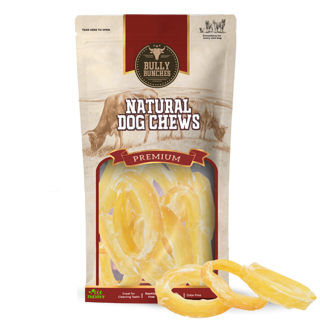Beef backstrap rings from Bully Bunches are a hard chew for low to medium chewers. Just as good as our other backstrap treats, the round shape makes this chew more of a challenge and more engaging for your dog overall. Our beef backstrap rings are a long-lasting chew for small to medium breeds and a tail-waggingly delicious snack for larger breeds. Made from the backstrap muscle of a cow, these hard and crunchy chews are rich in protein and packed with nutrition. This beef backstrap for dogs is ethically sourced and oven-baked to be a healthier alternative to rawhide. We hand-sort and inspect every strap to ensure your pup gets a dependable product with high consistency and unmatched value.