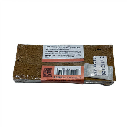 Pumpkin Ingredients: oat flour, rice flour, pumpkin, eggs, lard, cinnamon, cloves and ginger.