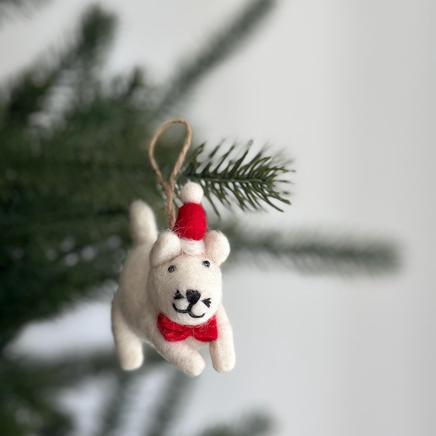 Felt White Cat in Christmas Hat Ornament