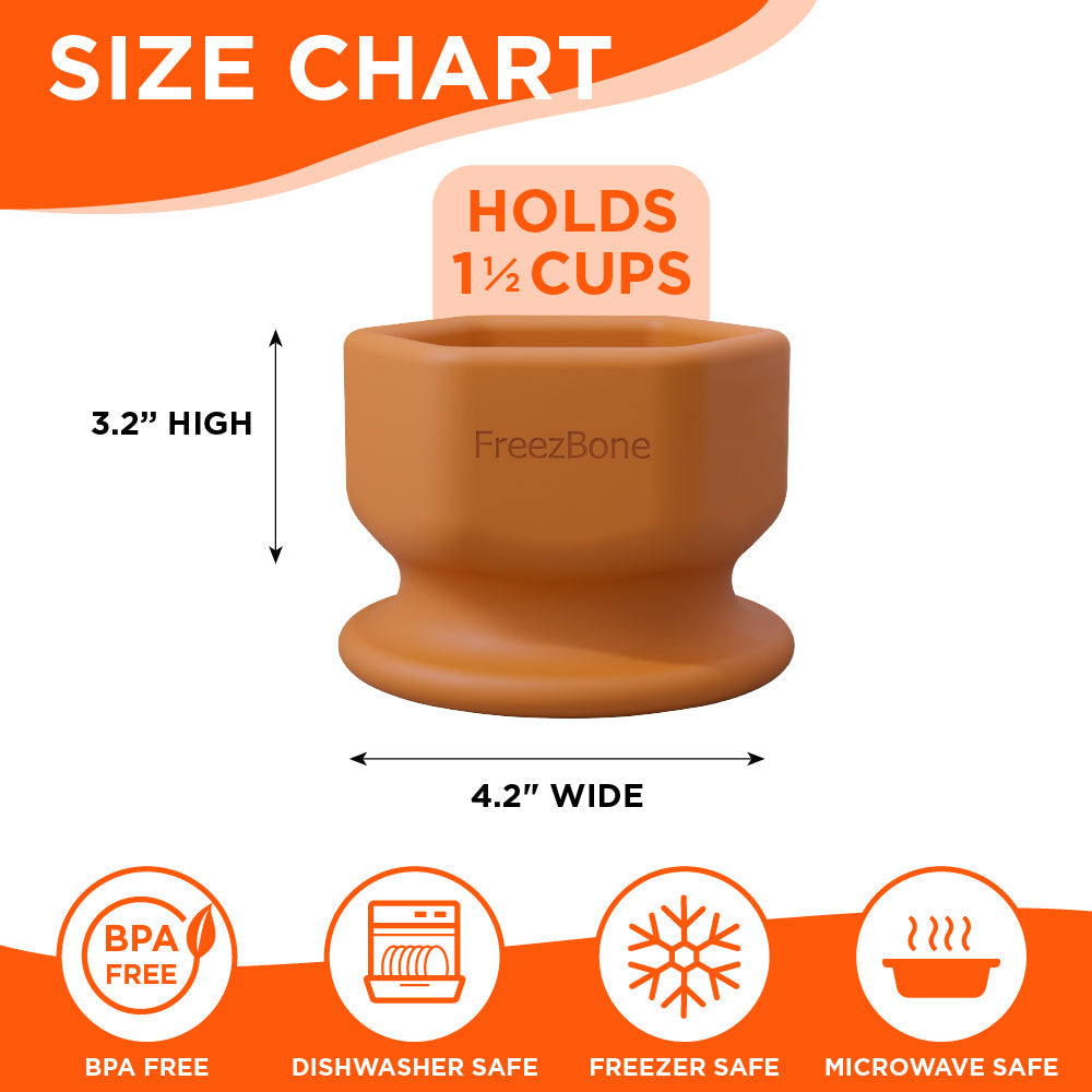 The FreezCup features a distinctive, cup-like shape with textured grooves to hold fillers securely. This clever design adds an enriching and interactive element to playtime, ensuring your pet gets a rewarding and enjoyable chewing experience.