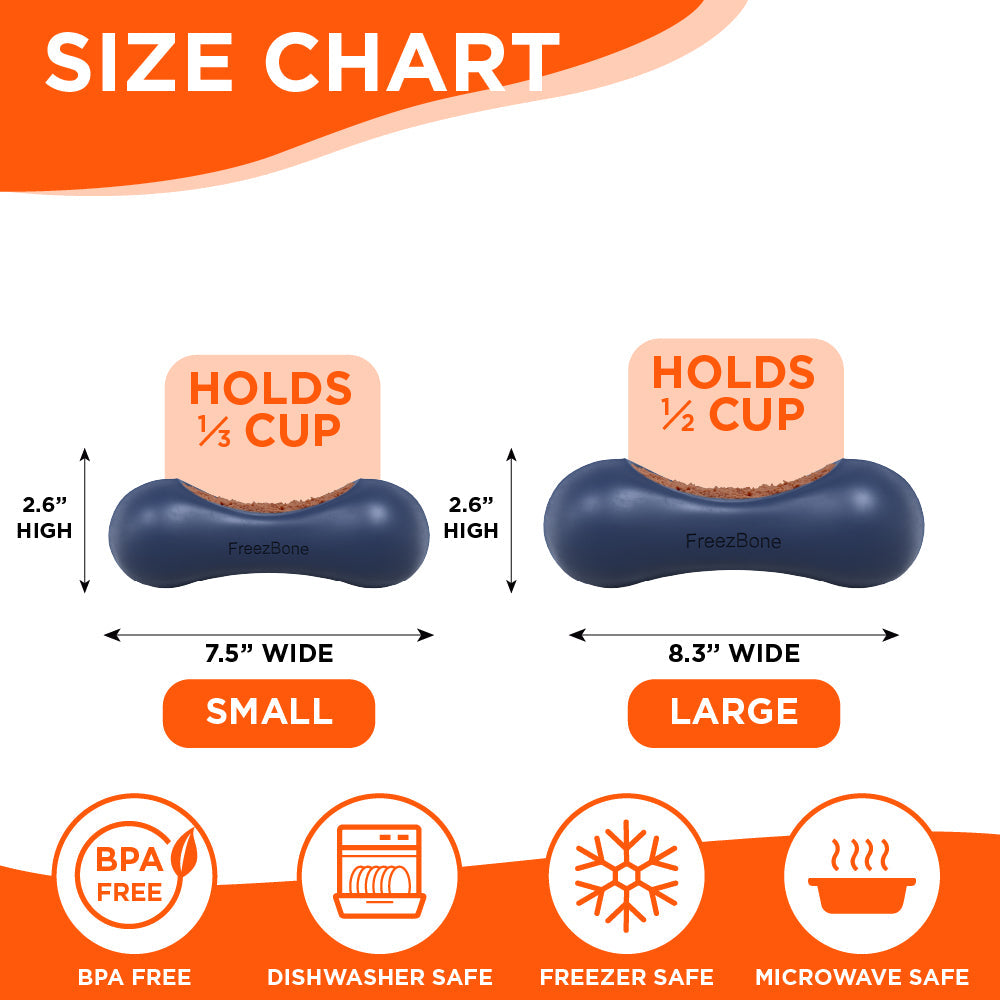Freezstick is available in two sizes, small and large. This way you can choose the perfect refillable bone treat for your furry best friend.