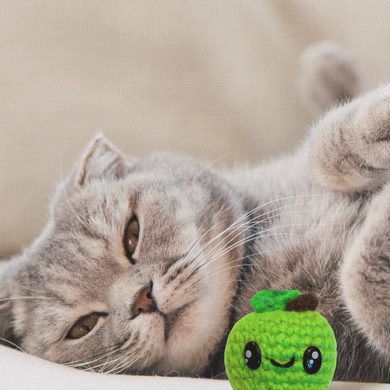 Ruby and Olive are two bright autumn apples that don’t just sit pretty — they stir instinct. Beneath their woven skins is the Miracle Nip botanical blend for cats: a chemist-crafted fusion of thirteen global botanicals that reach scent receptors ordinary catnip can’t touch. One breath and something changes: ears tilt, pupils widen, a gentle paw lands for the first swat.