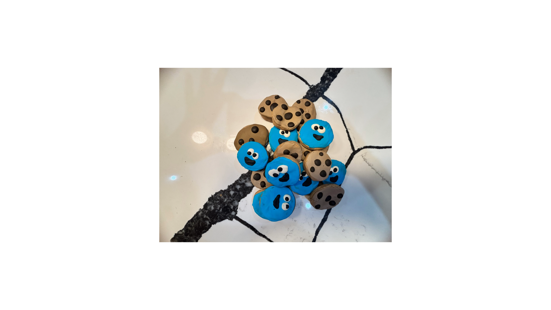 These adorable hand-decorated cookies are almost too cute to eat! Each one is made with our signature organic peanut butter recipe and topped with playful Cookie Monster-inspired designsācomplete with big googly eyes and his favorite chocolate chip cookie. Not only do they bring a smile, but theyāre also baked with wholesome, dog-safe ingredients you can feel good about.