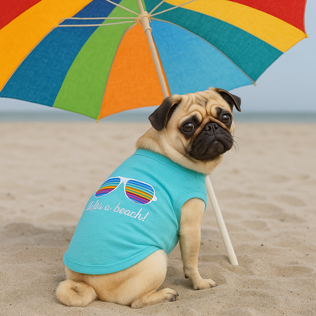 Parisian Pet 'Life's a Beach' Summer Dog T-Shirt – Comfortable Beach-Themed Pet Clothing for Dogs & Cats, Light Blue