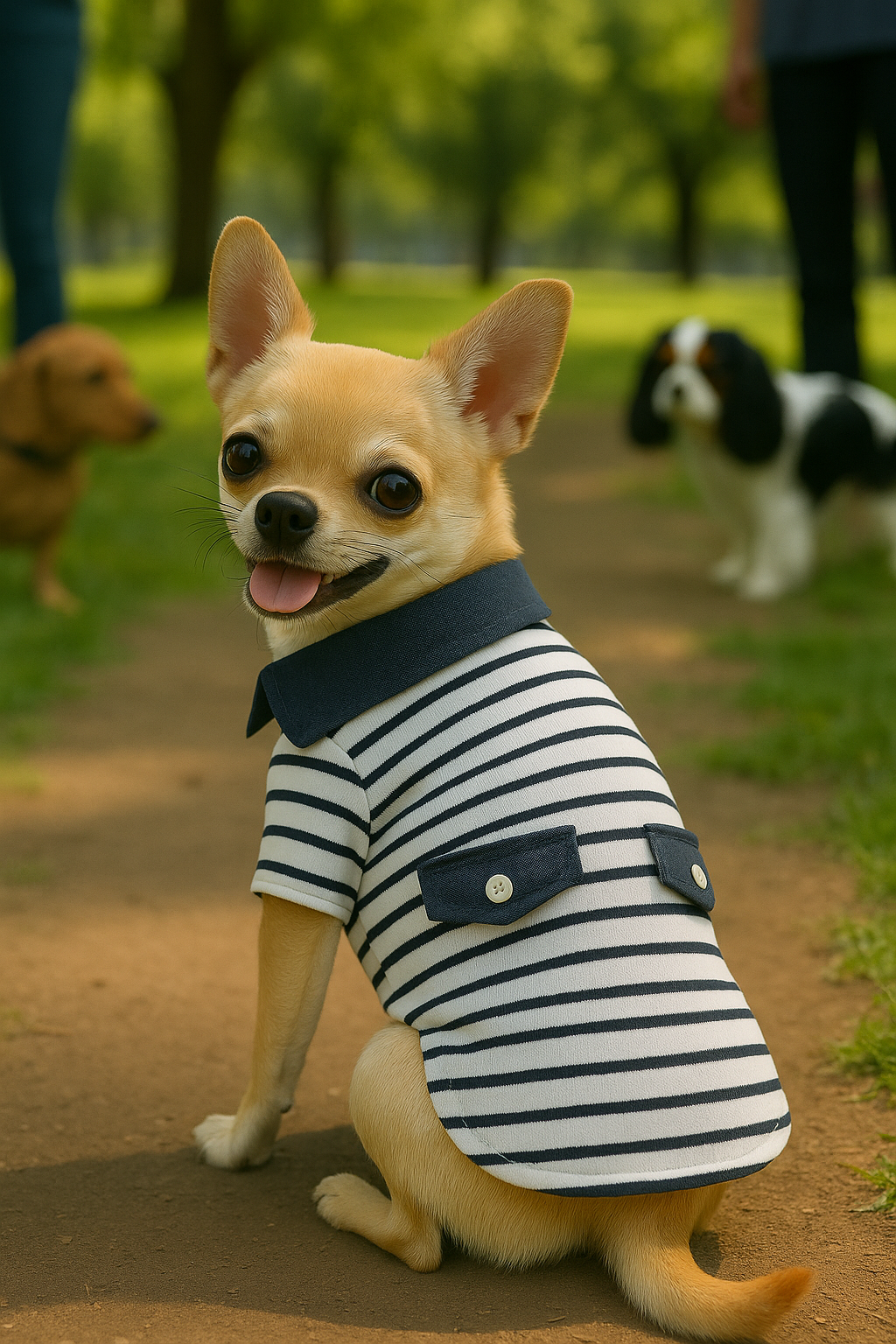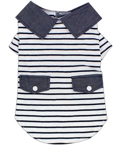 Parisian Pet 'Preppy Boy Polo' Dog & Cat T-Shirt – Trendy Cotton Polo Shirt, Comfortable & Lightweight, Blue White Stripes-Valentine's Day