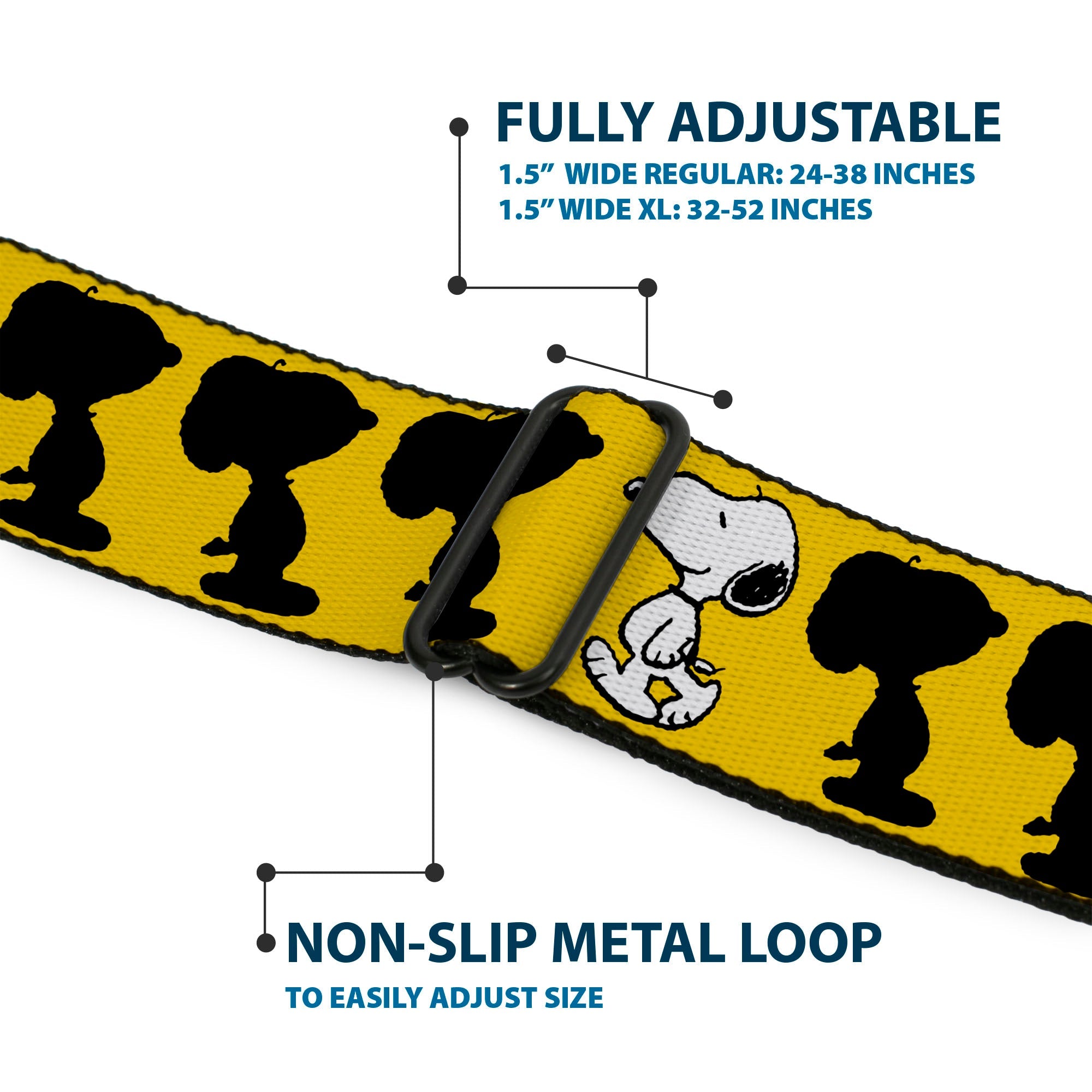 PEANUTS Title Logo Full Color Black/White Seatbelt Belt - Peanuts Snoopy Walking/Silhouette Pose Yellow/Black/White Webbing