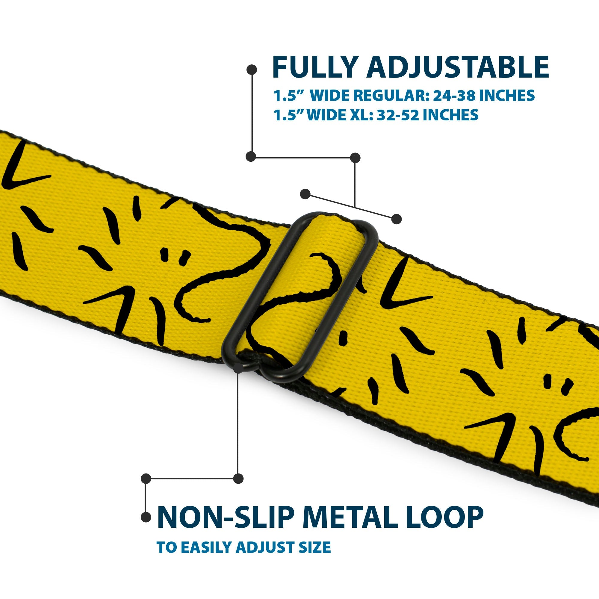PEANUTS Title Logo Full Color Black/White Seatbelt Belt - Peanuts Woodstock Line Face Line Art Yellow/Black Webbing