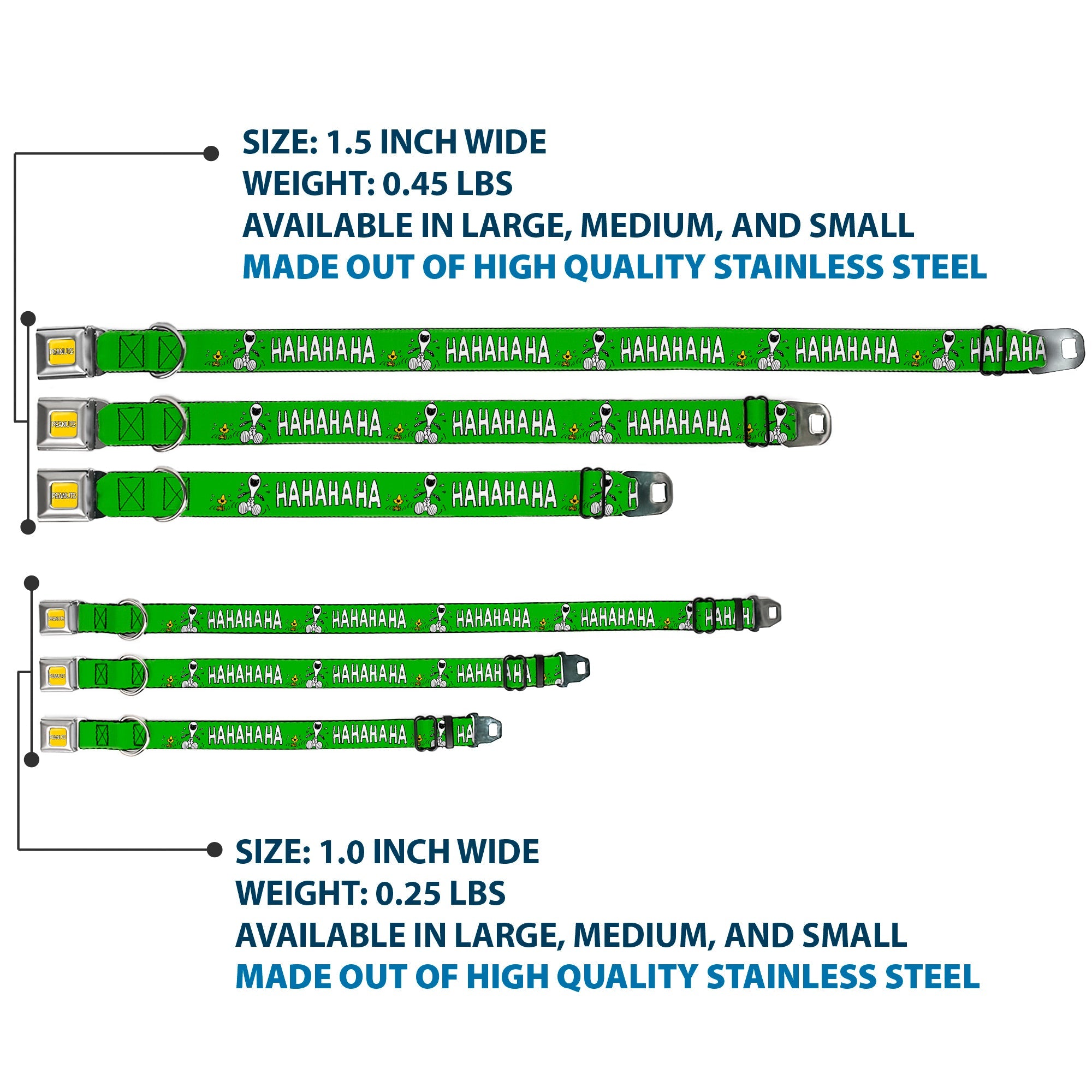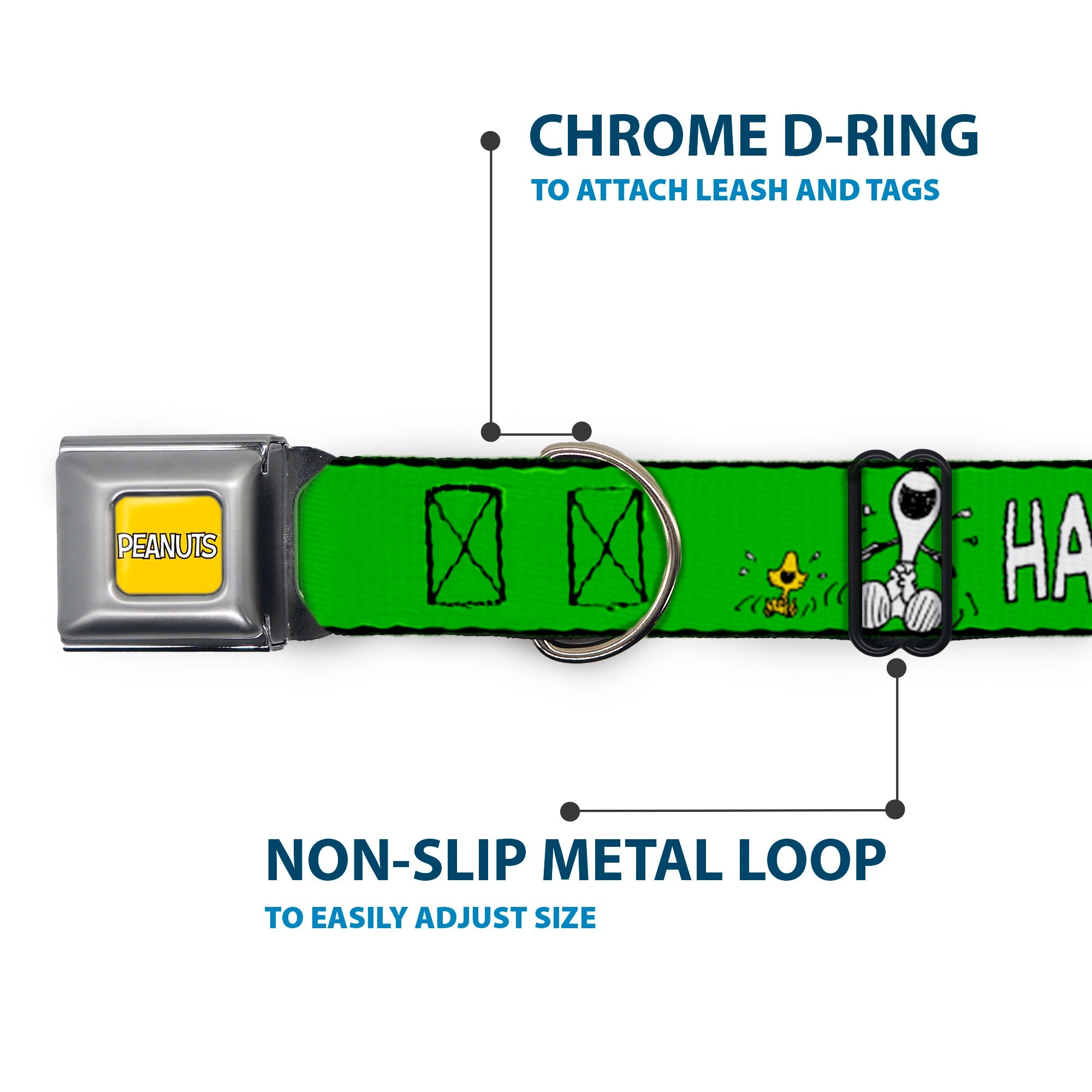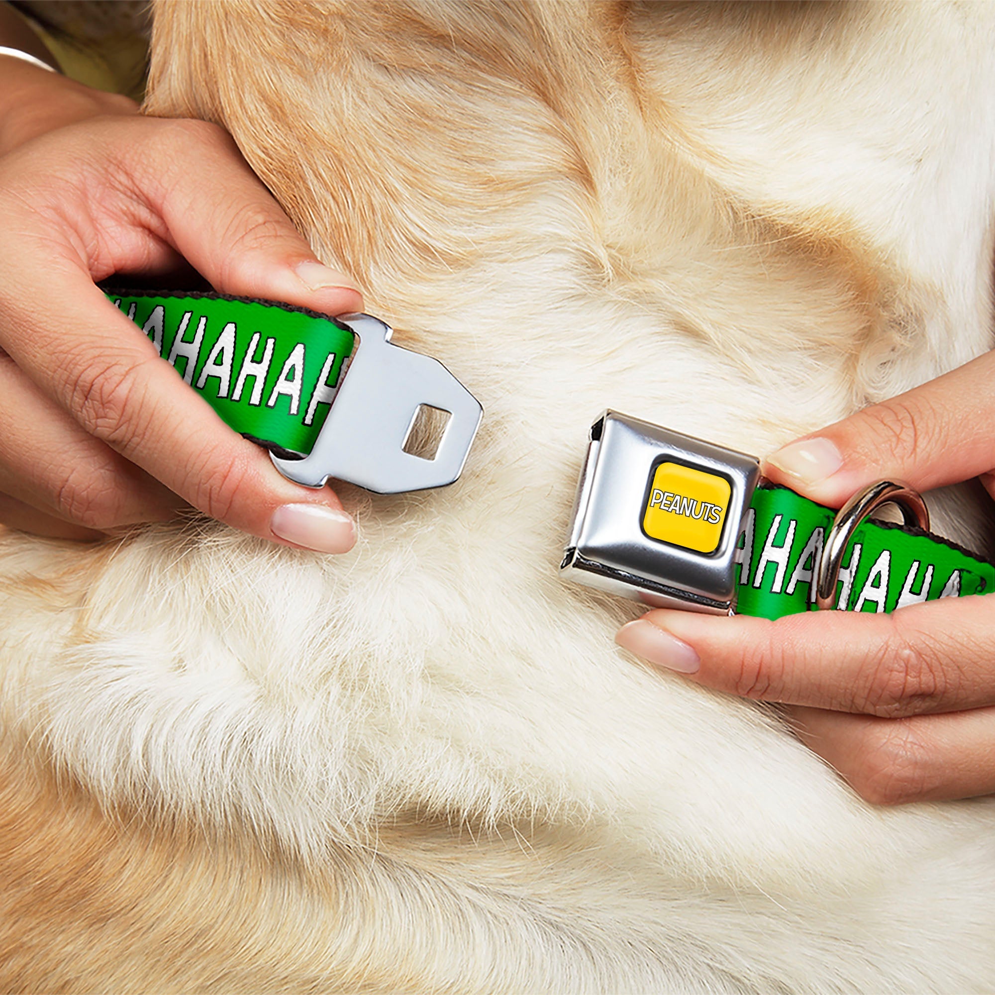 PEANUTS Title Logo Full Color Yellow/White Seatbelt Buckle Collar - Peanuts Snoopy and Woodstock Laughing HAHA Pose Green