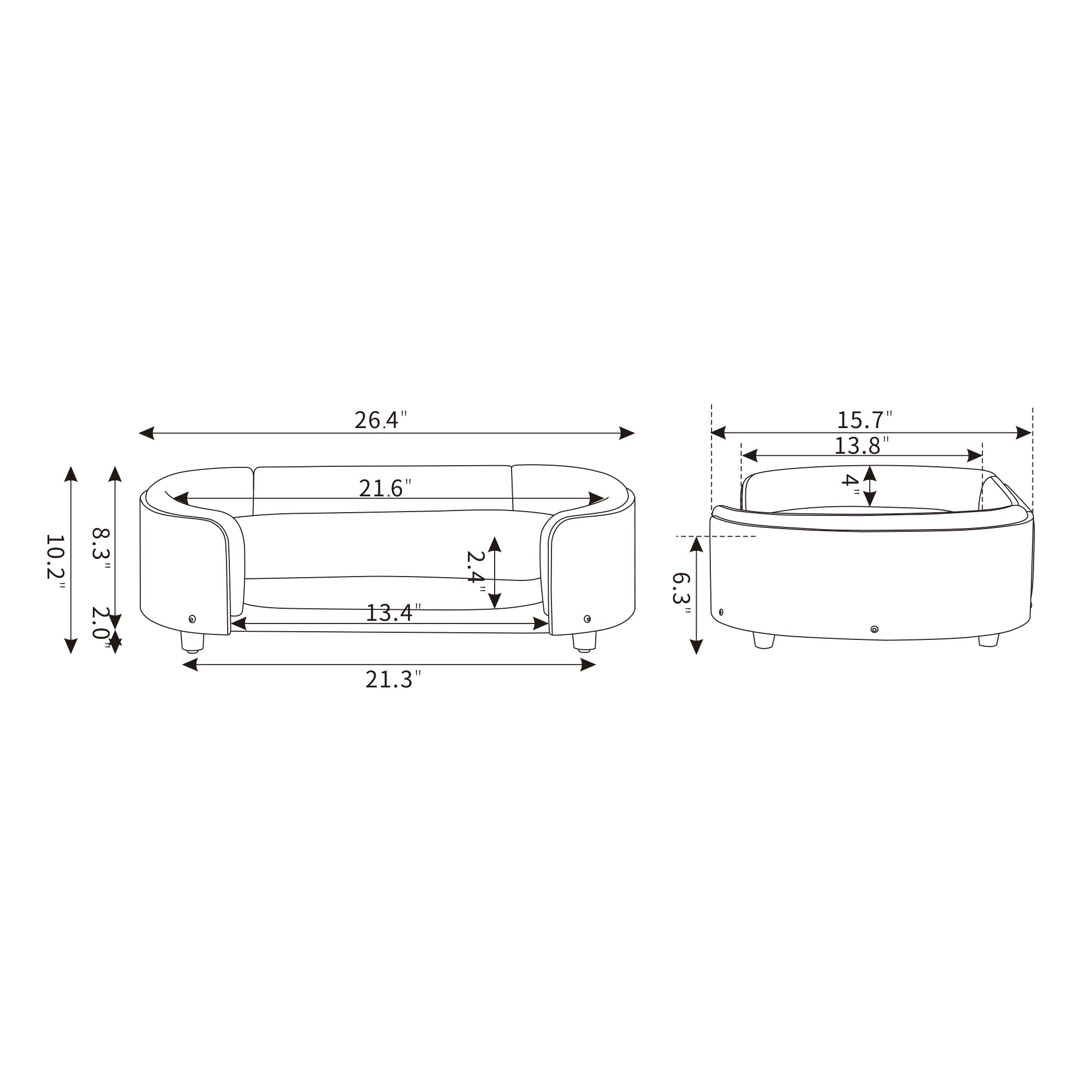 Scandinavian style Elevated Dog Bed Pet Sofa With Solid Wood legs and Bent Wood Back, Velvet Cushion,Small Size